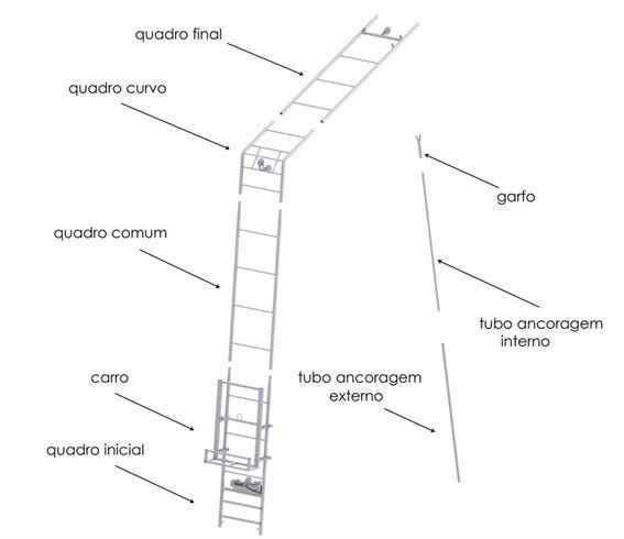 -Altura máxima:13 metros + 3 metros curva e modulo final